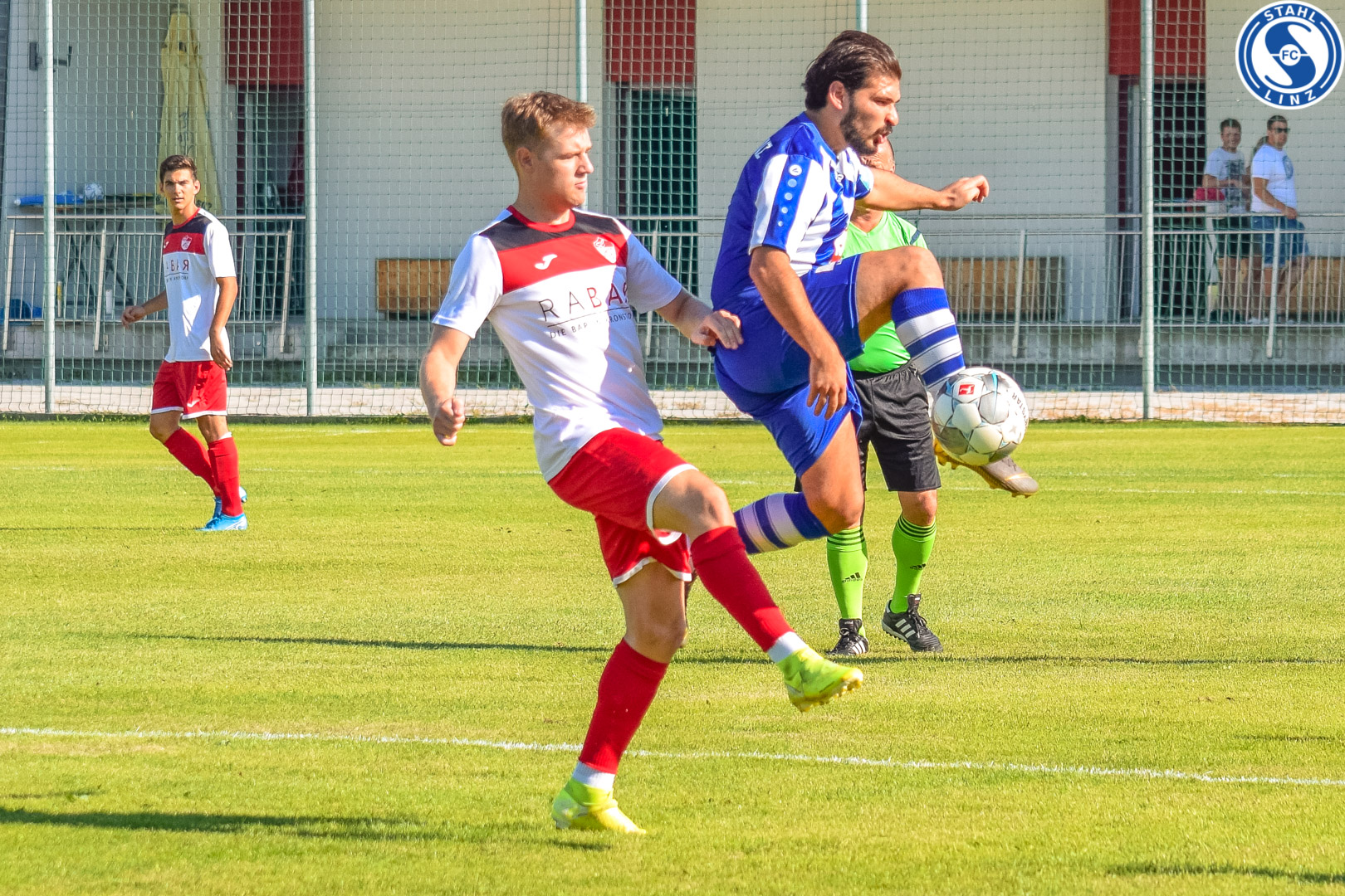 [Der Defensive von Kronsdorf gelingt es nicht den in den Strafraum eindringenden Ionut zu stoppen. Zwar mit etwas Ballglück aber Effektiv lässt er seine Gegenspieler Alt aussehen und schießt trocken zur Führung des FC Stahl Linz ein.] | |