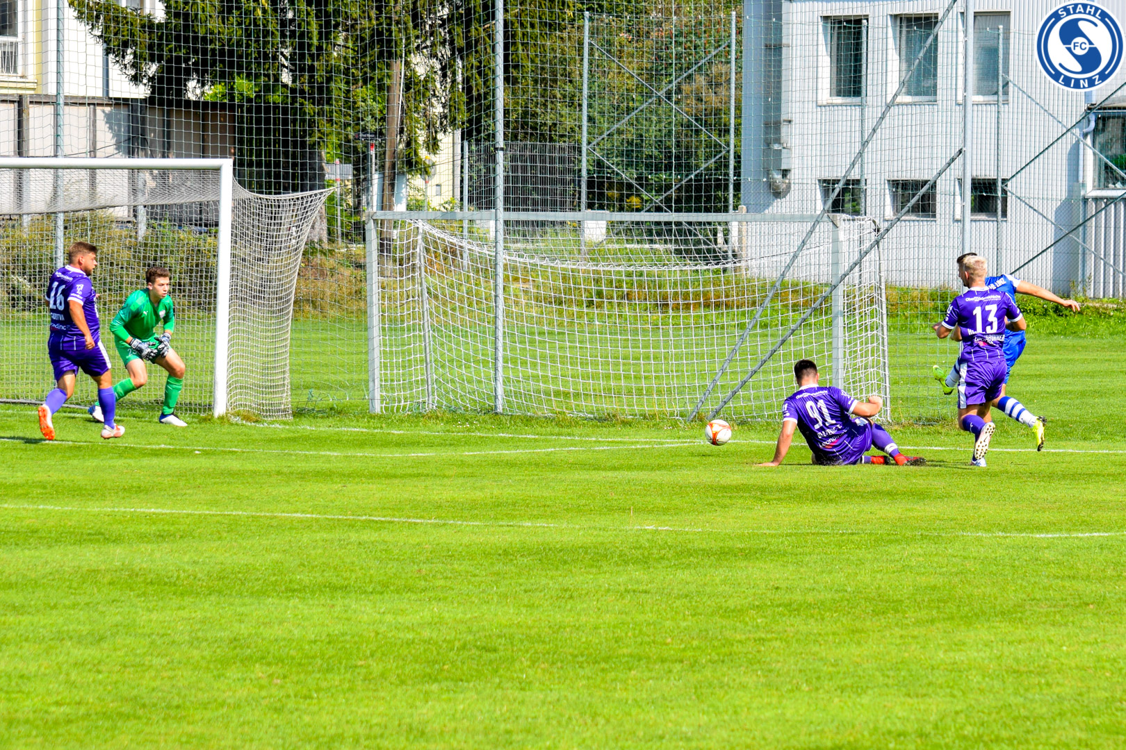 [Toller Freistoß von Stahl Linz! Doch der Tormann kann mit Reflex klären!] | |